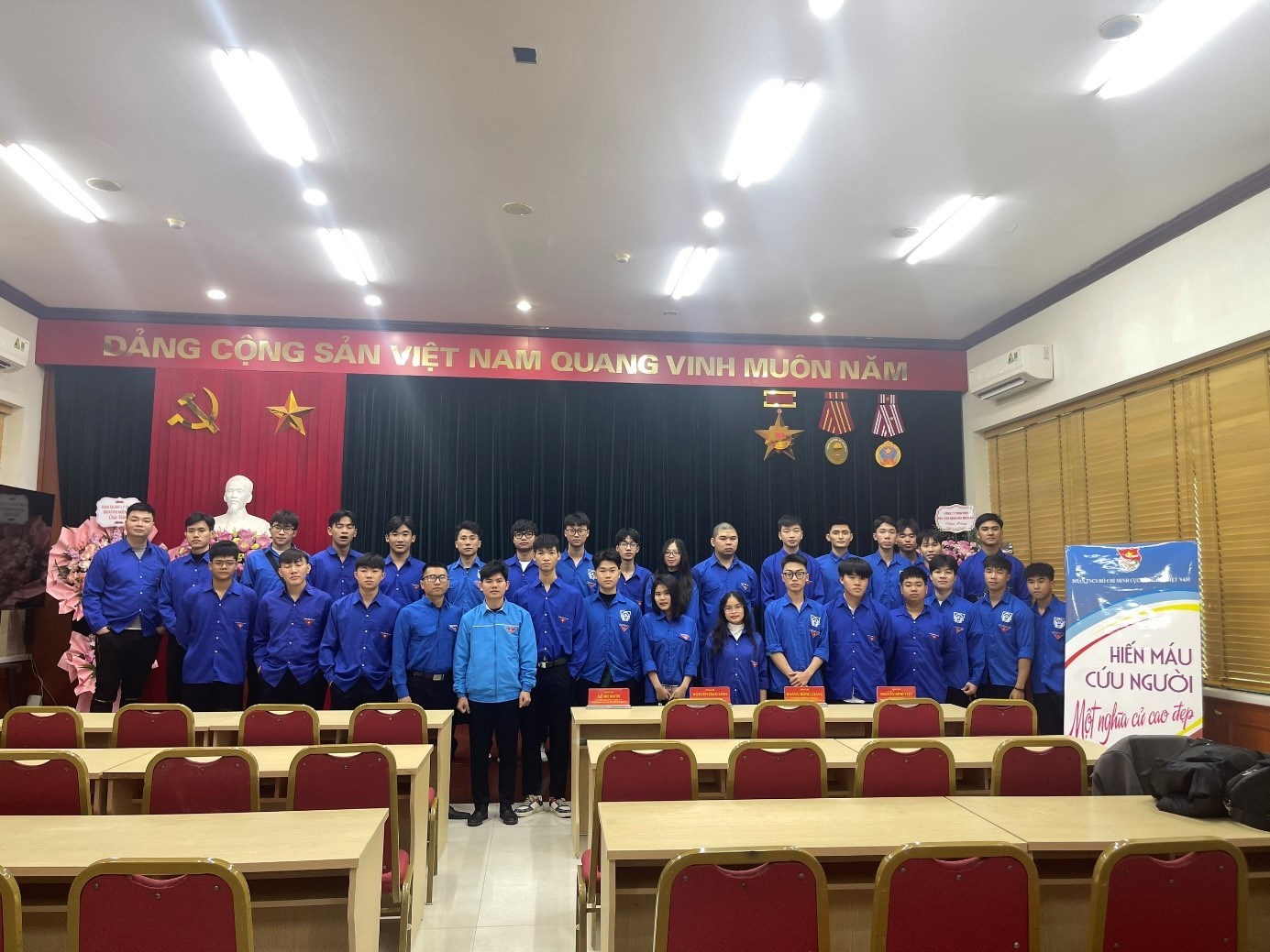 Ảnh 2. Tập thể đoàn viên thanh niên Trường CĐHHI tham gia hiến máu
