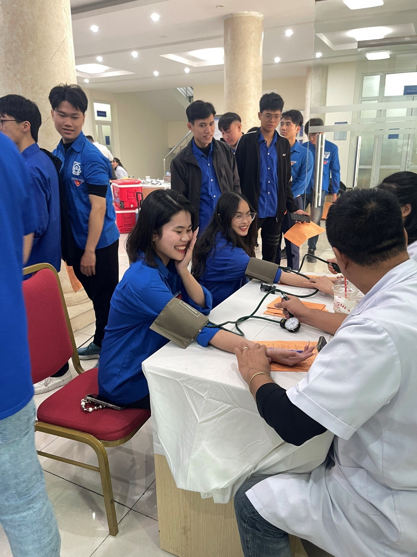 Ảnh 4. Các đoàn viên thanh niên thực hiện kiểm tra trước khi hiến máu