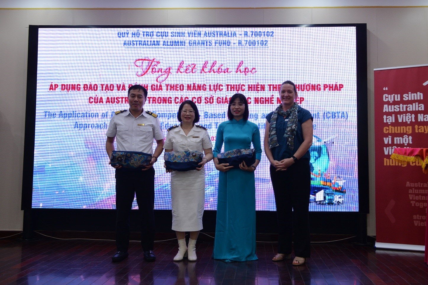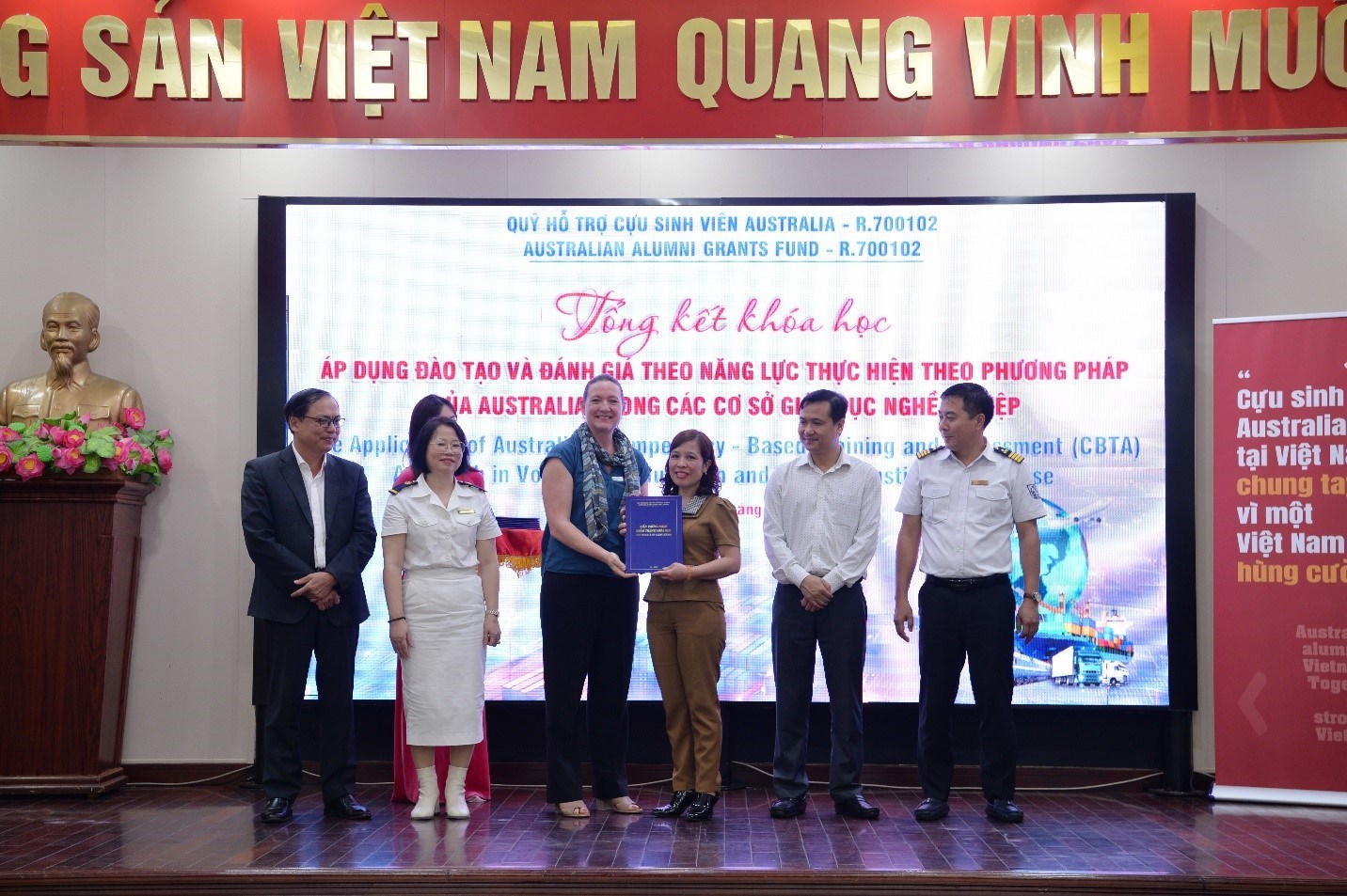 Bà Jennie Dehn – Giám đốc Chương trình Aus4skills tặng quà Nhóm Dự án cựu sinh Australia Trường Cao đẳng Hàng hải I