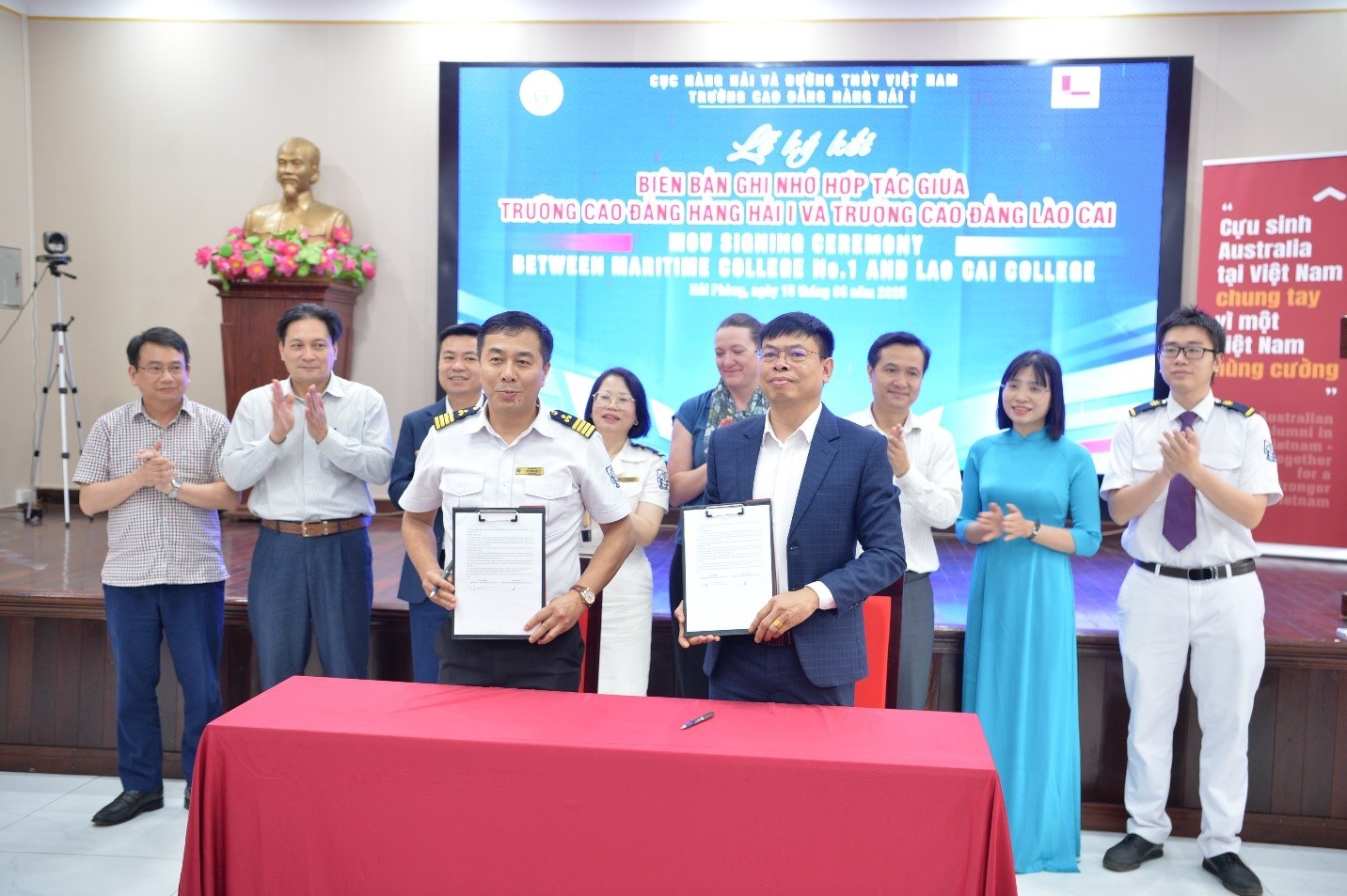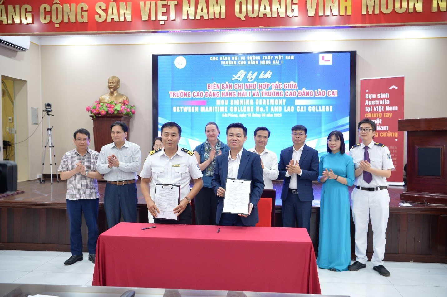 Đồng thời các đại biểu cùng chứng kiến Lễ ký biên bản ghi nhớ, hợp tác đào tạo và chuyển giao CBTA giữa Trường Cao đẳng Hàng hải I và Trường Cao đẳng Lào Cai, Trường Cao đẳng Kỹ thuật và Công nghệ tỉnh Hà Giang. Đồng thời, Trường Cao đẳng Hàng hải I cũng trao tặng Quỹ học bổng khuyến khích học tập cho học sinh sinh viên có hoàn cảnh khó khăn đang học tập tại Trường Cao đẳng Kỹ thuật và Công nghệ tỉnh Hà Giang.