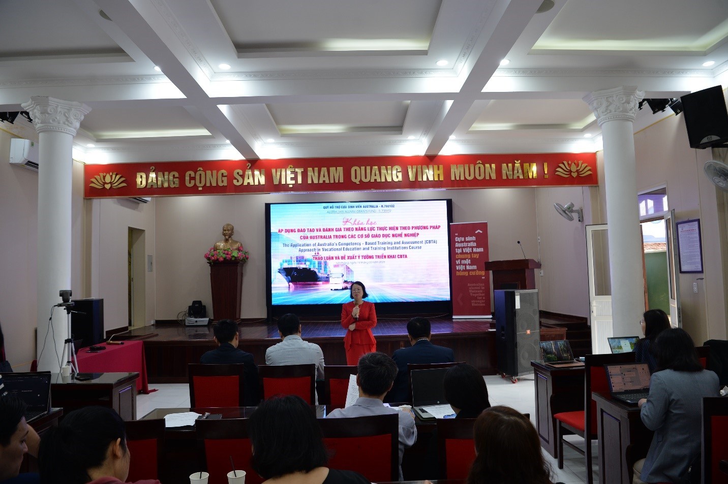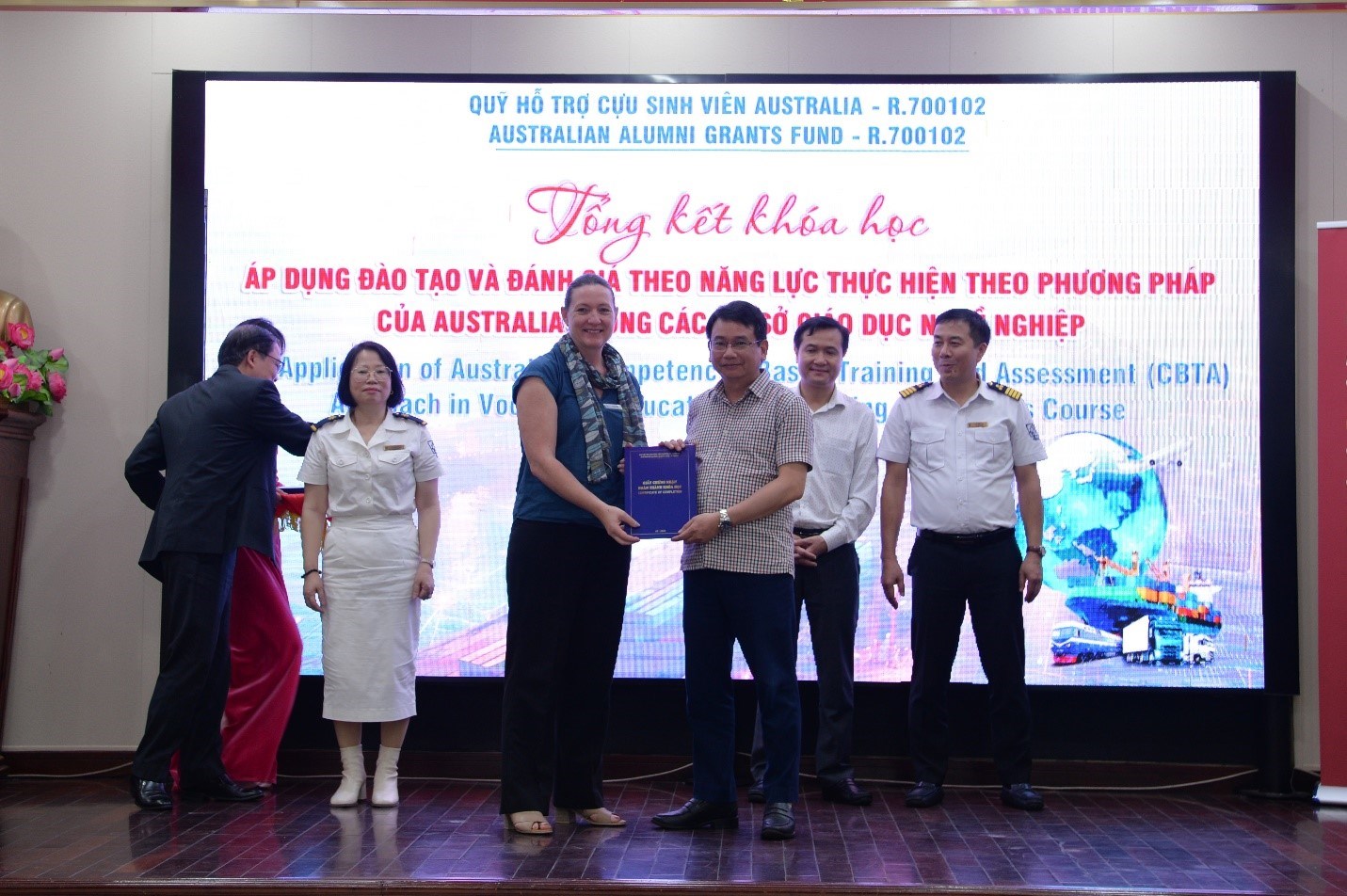 Đại diện Chương trình Aus4skills, Cục GDNN&GDTX và đại diện Nhóm Dự án đã thực hiện trao Chứng chỉ hoàn thành khóa học cho 23 học viên là lãnh đạo các trường, trưởng phó các phòng, khoa và giảng viên đến từ các trường đã nỗ lực, tích cực tham gia học tập, nghiên cứu ứng dụng CBTA để triển khai thực hiện hiệu quả tại các nhà trường.