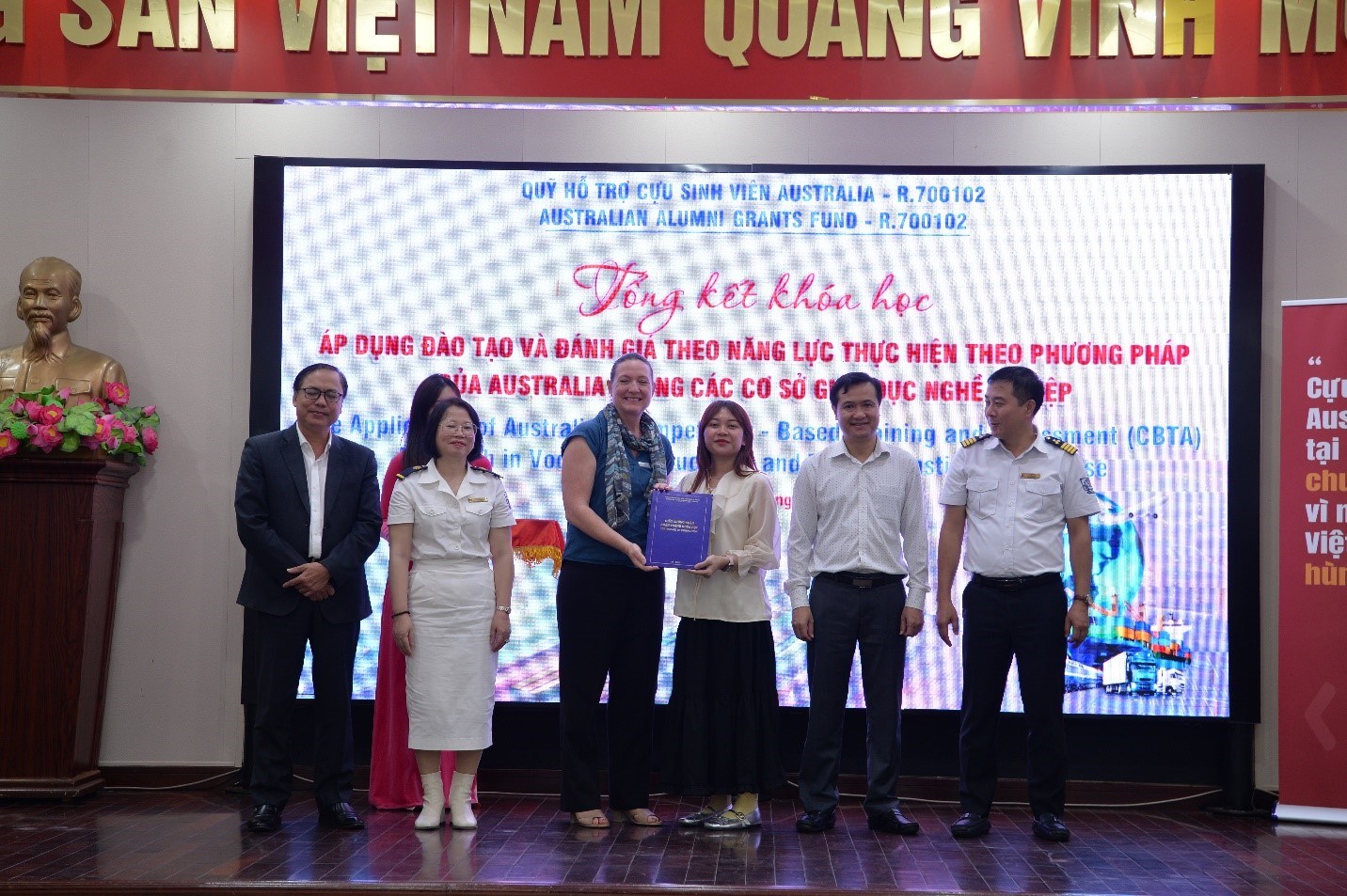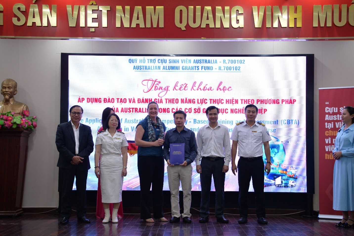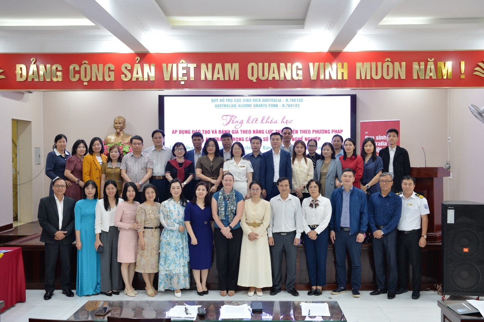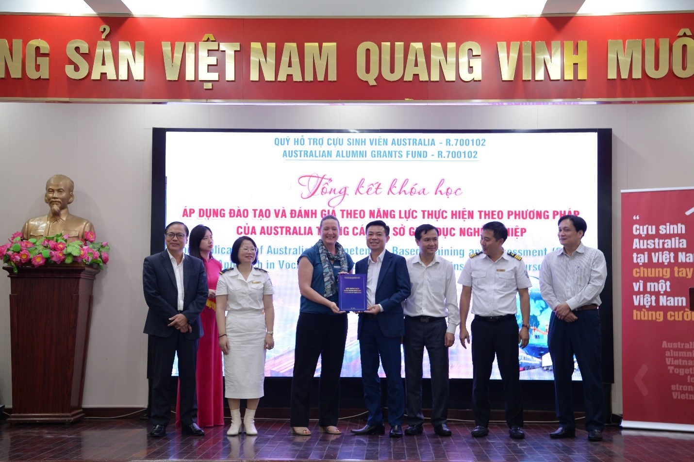 Cuối cùng, thay mặt Nhóm Dự án/Lãnh đạo Trường CĐ Hàng hải I và đại diện lãnh đạo các trường tham gia Khóa học, Bà Vũ Thị Hải Vân - Trưởng nhóm dự án, Chủ tịch Hội đồng trường đã gửi lời cảm ơn chân thành đến Chính phủ Australia, Chương trình Aus4skills, Quỹ hỗ trợ cưu sinh viên Australia, các chuyên gia Australia và Việt Nam, các cơ quan quản lý nhà nước đã tạo cơ hội cho giáo viên các trường được tham gia khoá học này và kính mong tiếp tục nhận được sự đồng hành, quan tâm, hỗ trợ từ tất cả các quý vị để có thể được tham gia thêm nhiều hoạt động của Chương trình Aus4skills, góp phần vào sự phát triển bền vững của các Nhà trường, đồng thời tạo thêm nhiều cơ hội việc làm và thu nhập cho HSSV.