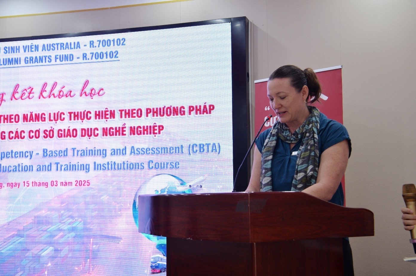 Bà Jennie Dehn phát biểu chúc mừng tại Buổi tổng kết Khoá học