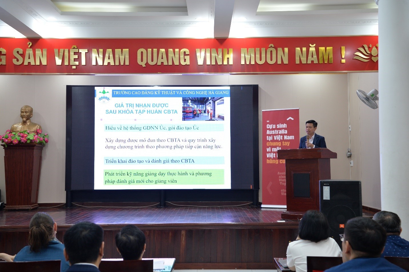 Tại buổi Tổng kết bà Jennie Dehn – Giám đốc Dự án bày tỏ sự vui mừng trước báo cáo kết quả của 07 trường và 23 thành viên tham gia khoá học với những ý tưởng về triển khai ứng dụng CBTA tại các trường trong các hoạt động: Tập huấn nâng cao nhận thức của giáo viên, xây dựng các mô đun ứng dụng trong ngành logistics hoặc các ngành khác (đối với các trường chưa đào tạo nghề logistics), thiết kế kho mô phỏng và chỉnh sửa chương trình dựa trên việc thiết kế một số mô đun cốt lõi đã được chuyển giao.