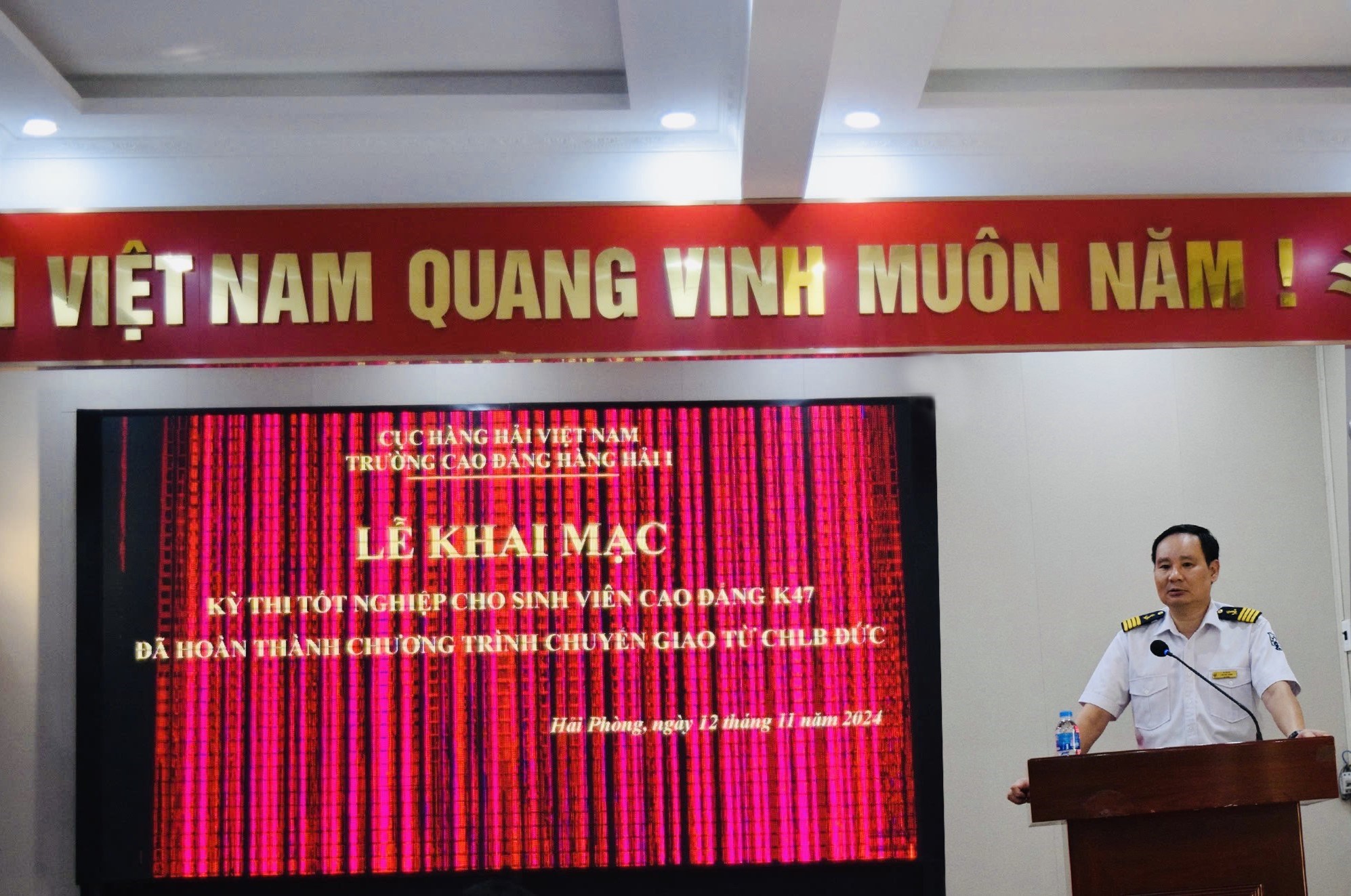 Ngày 12/11/2024 trường cao đẳng Hàng hải I đã tổ chức lễ khai mạc kỳ thi tốt nghiệp cho sinh viên cao đẳng khóa 47 (lớp 47CĐKQT - Nghề Điều khiển tàu biển và lớp 47CKMQT - Nghề Khai thác máy tàu thủy) đã hoàn thành chương trình chuyển giao từ CHLB Đức.
