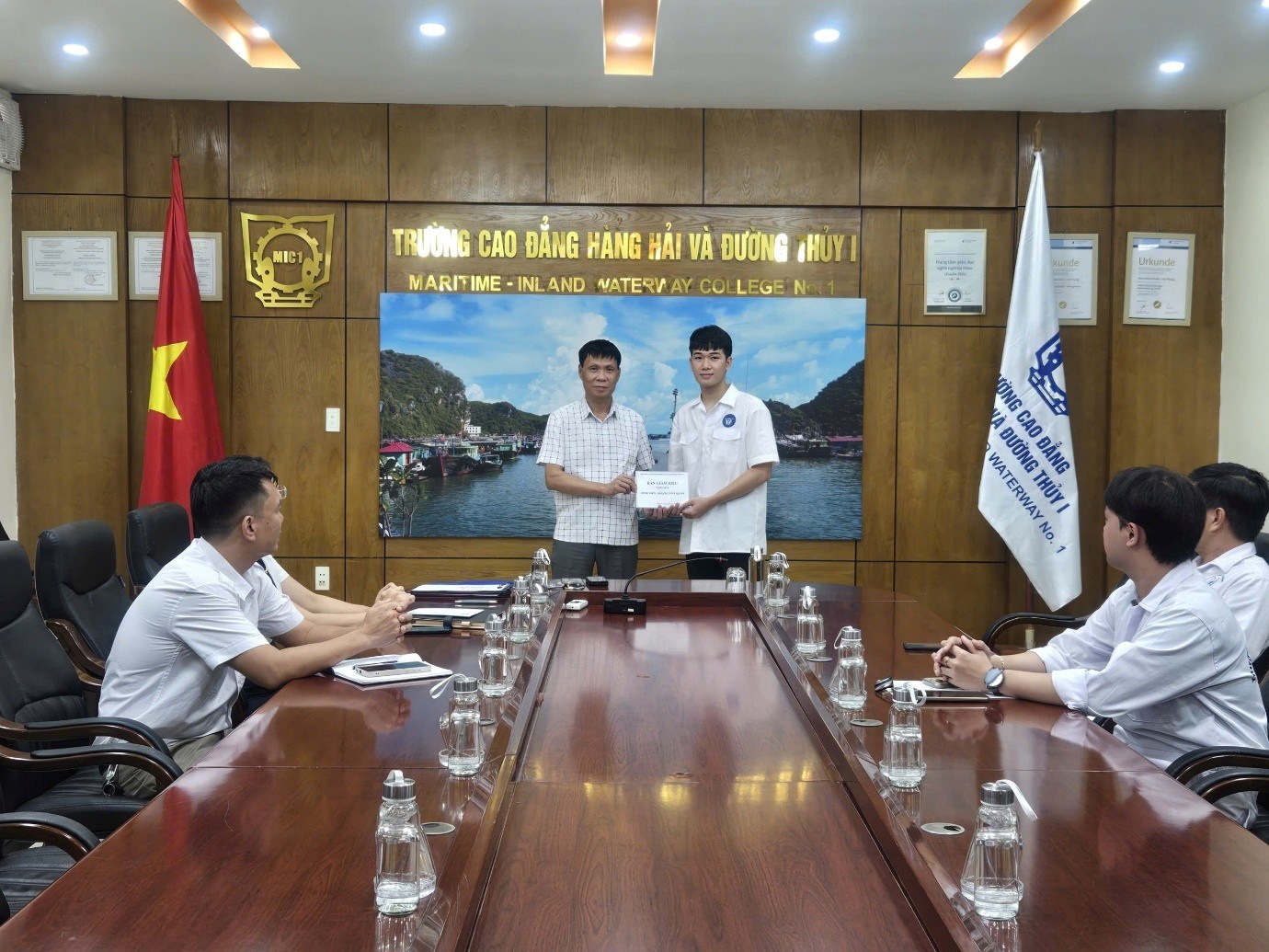 Chương trình không chỉ là cơ hội nâng cao kỹ năng nghề nghiệp mà còn là dịp để sinh viên khám phá văn hóa và mở rộng mối quan hệ quốc tế. Để chuẩn bị tinh thần tốt nhất cho sinh viên, ngày 15/9/2025, trường Cao đẳng Hàng hải và Đường thủy I đã tổ chức buổi gặp gỡ giữa Ban Giám hiệu nhà trường, đại diện khoa Khoa học Hàng hải, đại diện phòng Bảo đảm chất lượng – Hợp tác quốc tế, giáo viên chủ nhiệm lớp 51CMB1, giảng viên đã tham gia chương trình đào tại Hàn Quốc năm 2024 và sinh viên Hoàng Văn Quân.
