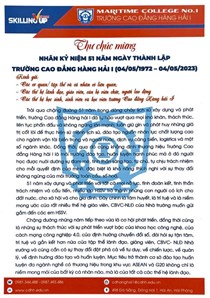 Thư chúc mừng nhân kỷ niệm 51 năm ngày thành lập trường Cao đẳng Hàng hải I (4/5/1972-4/5/2023)