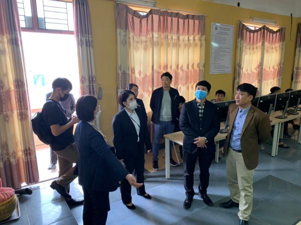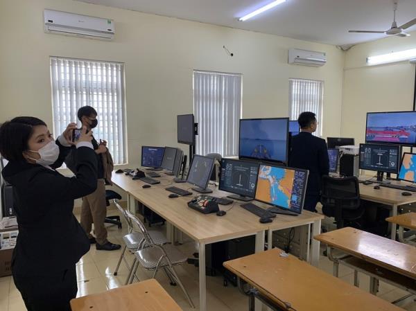 Ảnh 4. Đoàn chủ tàu Nhật Bản tham dự giờ học thực hành tại phòng Mô phỏng máy tàu thủy