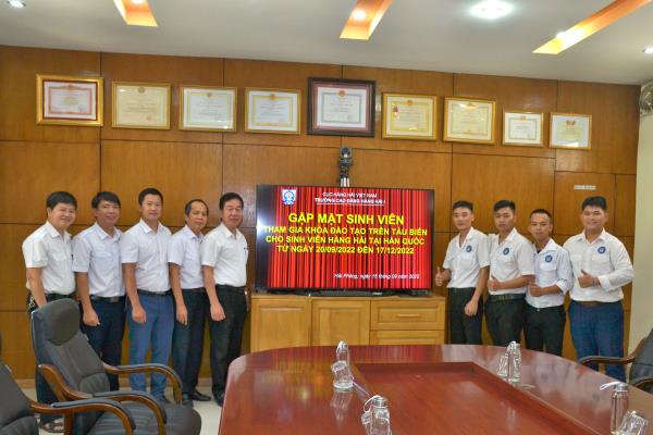 Để động viên, khích lệ các sinh viên trước khi sang Hàn Quốc tham dự Khóa đào tạo, ngày 15/9/2022, Ban giám hiệu nhà trường, Phòng Hợp tác quốc tế - Khoa học công nghệ, khoa Điều khiển tàu biển và khoa Khai tác máy tàu biển đã tổ chức gặp mặt, động viên các sinh viên.