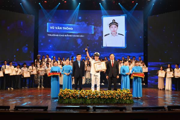Ảnh 1. Thầy Lê Huy Thụ - Giảng viên khoa Khai thác máy tàu biển tại lễ biểu dương