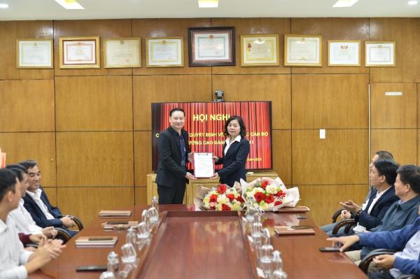 Thầy Lưu Việt Hùng, Hiệu trưởng nhà trường thừa ủy quyền của Cục Trưởng Cục Hàng Hải Việt Nam trao các quyết định của Cục trưởng Cục Hàng hải Việt Nam cho bà Nguyễn Thanh Huyền thôi giữ chức danh Kế toán trưởng và cho bà Phạm Thu Hiền đảm nhận nhiệm vụ phụ trách kế toán Trường Cao đẳng Hàng hải I.