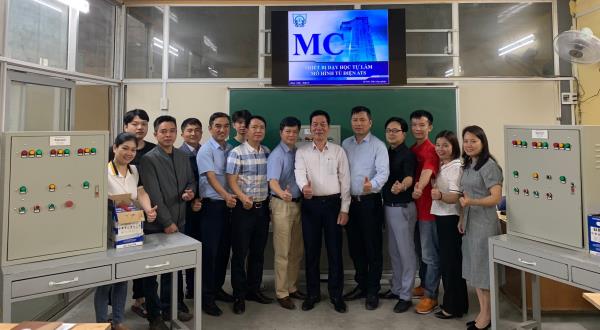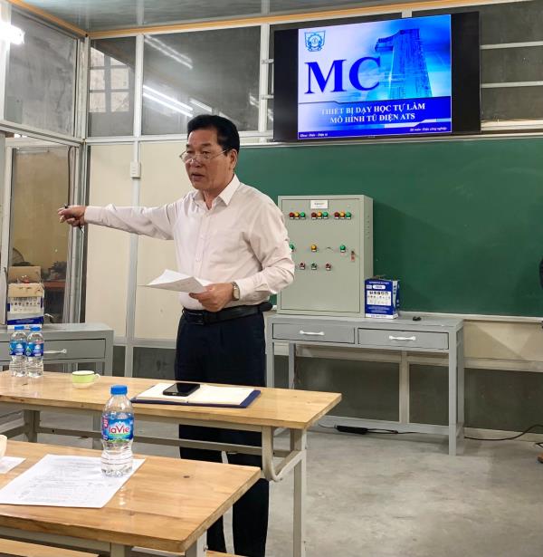 Tham dự chấm nghiệm thu có Ths. Lương Quang Trung - Phó Hiệu trưởng - Chủ tịch Hội đồng Khoa học và công nghệ nhà trường, các thầy, cô thành viên hội đồng cùng các thành viên trong nhóm chế tạo thiết bị đào tạo tự làm và các thầy, cô giảng viên khoa tham dự.