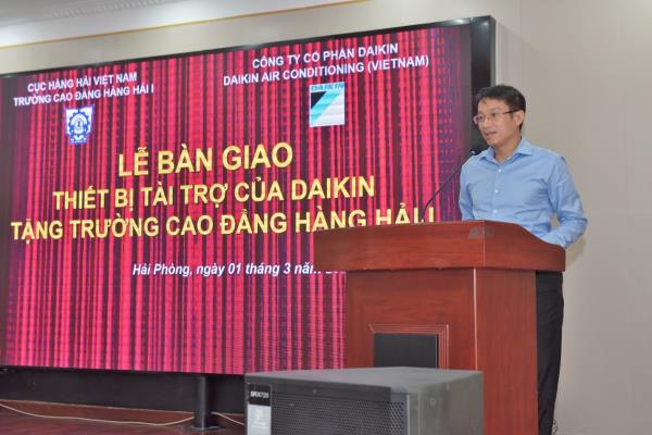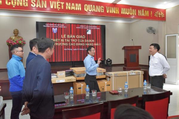 Để thực hiện tiếp các điều khoản trong thỏa thuận hợp tác giữa Daikin và Nhà trường. Ngày 01/3/2023 đại diện DaiKin Ông Nguyễn Trung Dũng, Giám đốc chi nhánh tại Hải Phòng thực hiện bàn giao thiết bị tài trợ của DaiKin tặng cho Trường Cao đẳng Hàng hải I, đại diện Nhà Trường Thầy Đỗ Hồng Hải Phó Hiệu trưởng nhận thiết bị.