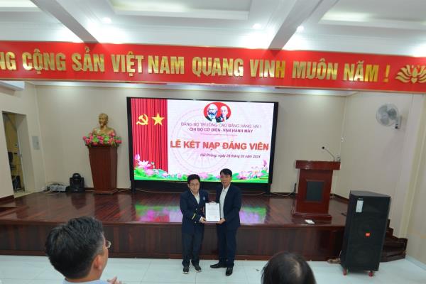 Tham dự Lễ kết nạp đảng viên, có đồng chí Vũ Thị Hải Vân- Phó Bí thư Đảng ủy, các đồng chí trong BCH Đảng bộ, đảng viên Chi bộ Cơ điện - Vận hành máy cùng các quần chúng ưu tú đã được học lớp bồi dưỡng nhận thức về Đảng trong Đảng bộ nhà trường.