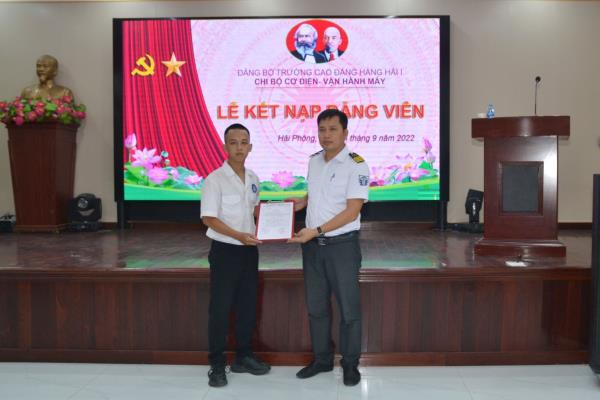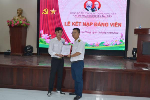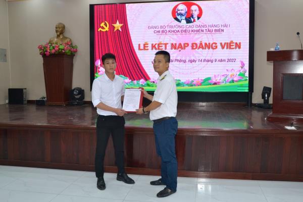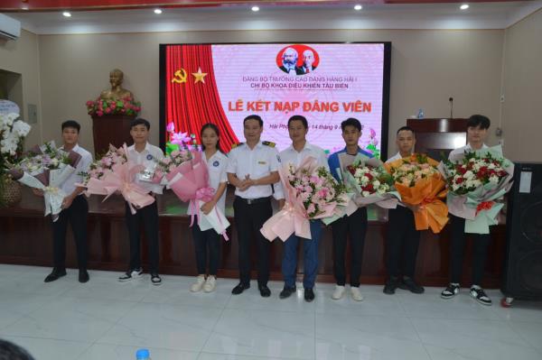 Nối tiếp thành công Đại hội các chi bộ nhiệm kỳ 2022-2025, được sự chấp thuận của Ban Chấp hành Đảng ủy, chiều ngày 14/9/2022, Chi bộ Khoa Điều khiển tàu biển và Chi bộ Cơ điện-vận hành máy đã phối hợp tổ chức Lễ kết nạp Đảng viên mới cho 07 quần chúng ưu tú (trong đó có 01 viên chức và 06 sinh viên).