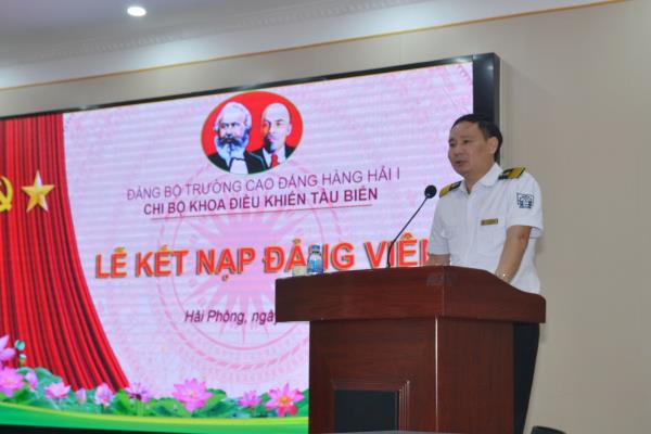 Tham dự Lễ kết nạp đảng viên, có đồng chí Lưu Việt Hùng - Bí thư Đảng bộ, các đồng chí trong BCH và toàn thể đảng viên chi bộ chi bộ Khoa Điều khiển tàu biển và chi bộ Cơ điện - Vận hành máy cùng các quần chúng ưu tú đã được học lớp cảm tình đảng trong Đảng bộ Trường.