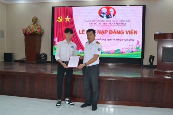 Tại buổi lễ, các đồng chí Bí thư chi bộ Khoa Điều khiển tàu biển và chi bộ Cơ điện - Vận hành máy đã trao Quyết định kết nạp, giao nhiệm vụ và phân công đảng viên trong Chi bộ tiếp tục giúp đỡ 07 đồng chí đảng viên mới hoàn thành nhiệm vụ và phấn đấu trở thành đảng viên chính thức sau 01 năm thử thách.
