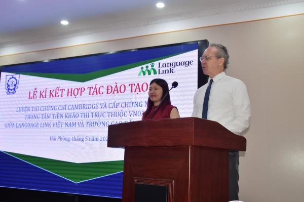 Cũng tại Hội nghị, Ông Gavan Dominic Iacono - Tổng giám đốc công ty Language Link Việt Nam cho biết Language Link Việt Nam là tổ chức có kinh nghiệm 26 năm cung cấp các khóa học tiếng Anh dành cho học sinh từ độ tuổi mẫu giáo đến người đi làm tại Việt Nam. Với bề dày kinh nghiệm của mình, Language Link Việt Nam vinh dự được Cambridge lựa chọn là Trung tâm khảo thí chính thức tổ chức các kỳ thi Cambridge tại Việt Nam và hứa hẹn sẽ là đối tác quan trọng cho sự phát triển của trường Cao đẳng Hàng hải I trong tương lai.