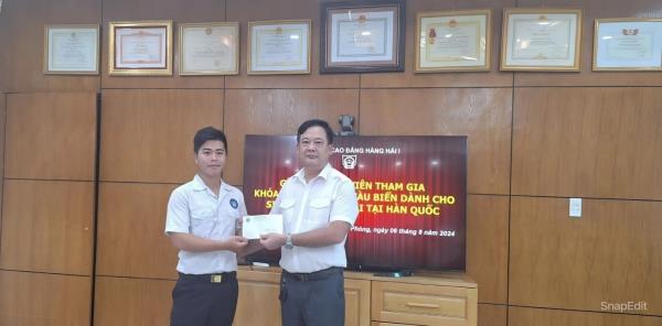 On May 15, 2024, Maritime College No.1 conducted a selection among the 2nd and 3rd year students of Faculty of Ship Navigation and Faculty of Marine Engineering Operation; as a result, the school selected 01 student Do Hong Ngoc - student of Faculty of Marine Engineering Operation participating in the training program in Korea.