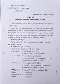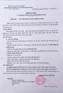 Thông báo về việc thu Đoàn phí và quỹ hoạt động thanh niên năm học 2013-2014
