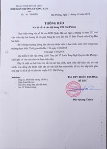 Thông báo đi cổ vũ cho đội bóng U21 Hải Phòng