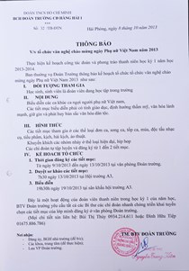 Thông báo lùi thời gian sơ khảo văn nghệ chào mừng ngày 20-10