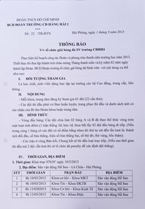 Thông báo tổ chức giải bóng đá truyền thống sinh viên trường CĐ Hàng hải I