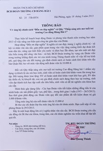 Thông báo ủng hộ chính sách "Đền ơn đáp nghĩa"