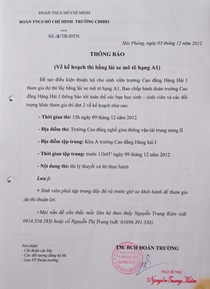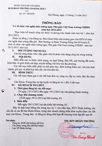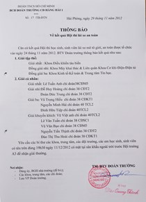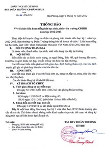 Thông báo: V/v tổ chức liên hoan tiếng hát học sinh, sinh viên trường CĐHH I năm học 2012-2013