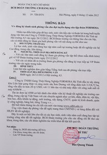 Thông báo về việc đăng ký danh sách phỏng vấn tuyển dụng của tập đoàn FORMOSA