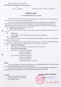 Thông báo về việc tổ chức Đêm hội văn hóa an toàn giao thông 2012