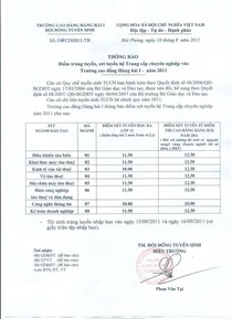 Thông báo: Quyết định điểm trúng tuyển nguyện vọng 2 cao đẳng hệ chính quy năm 2011