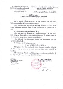 Thông báo nhập học cao đẳng đợt 1, năm 2019
