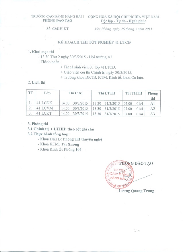Thông báo: Kế hoạch thi tốt nghiệp 41LTCĐ