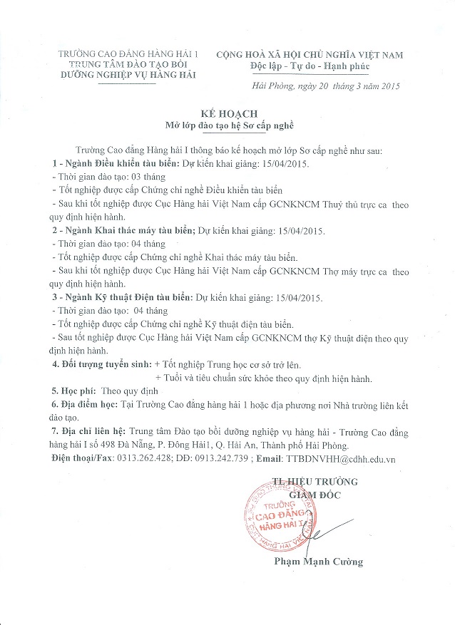 Thông báo: Tuyển sinh đào tạo sơ cấp nghề