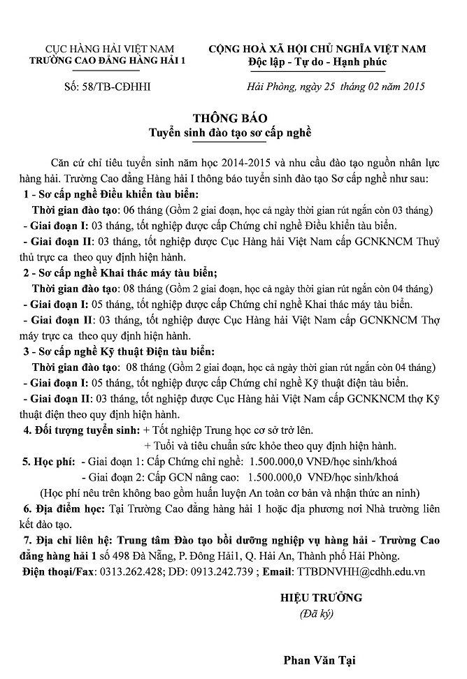 Thông báo: Tuyển sinh đào tạo sơ cấp nghề