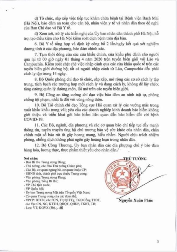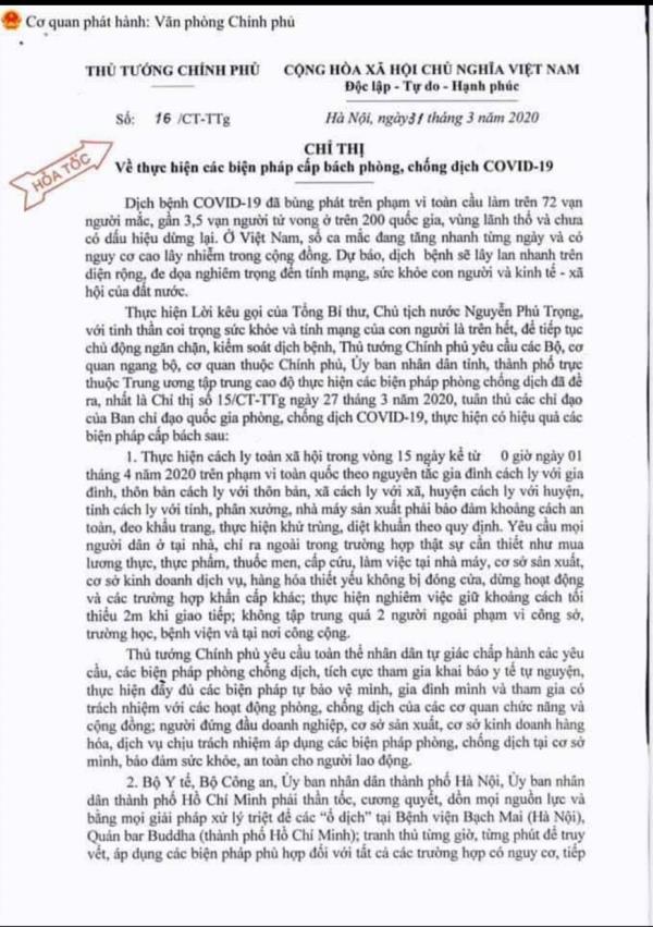 Thông báo: V/v thực hiện Chị thị của Thủ tướng Chính phủ về phòng, chống dịch COVID-19