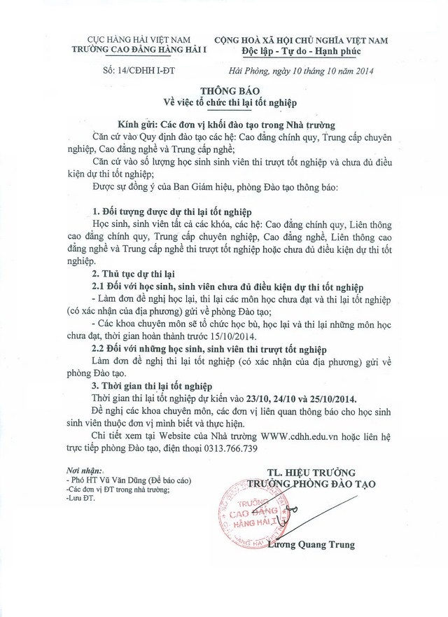 Thông báo: V/v tổ chức thi lại tốt nghiệp
