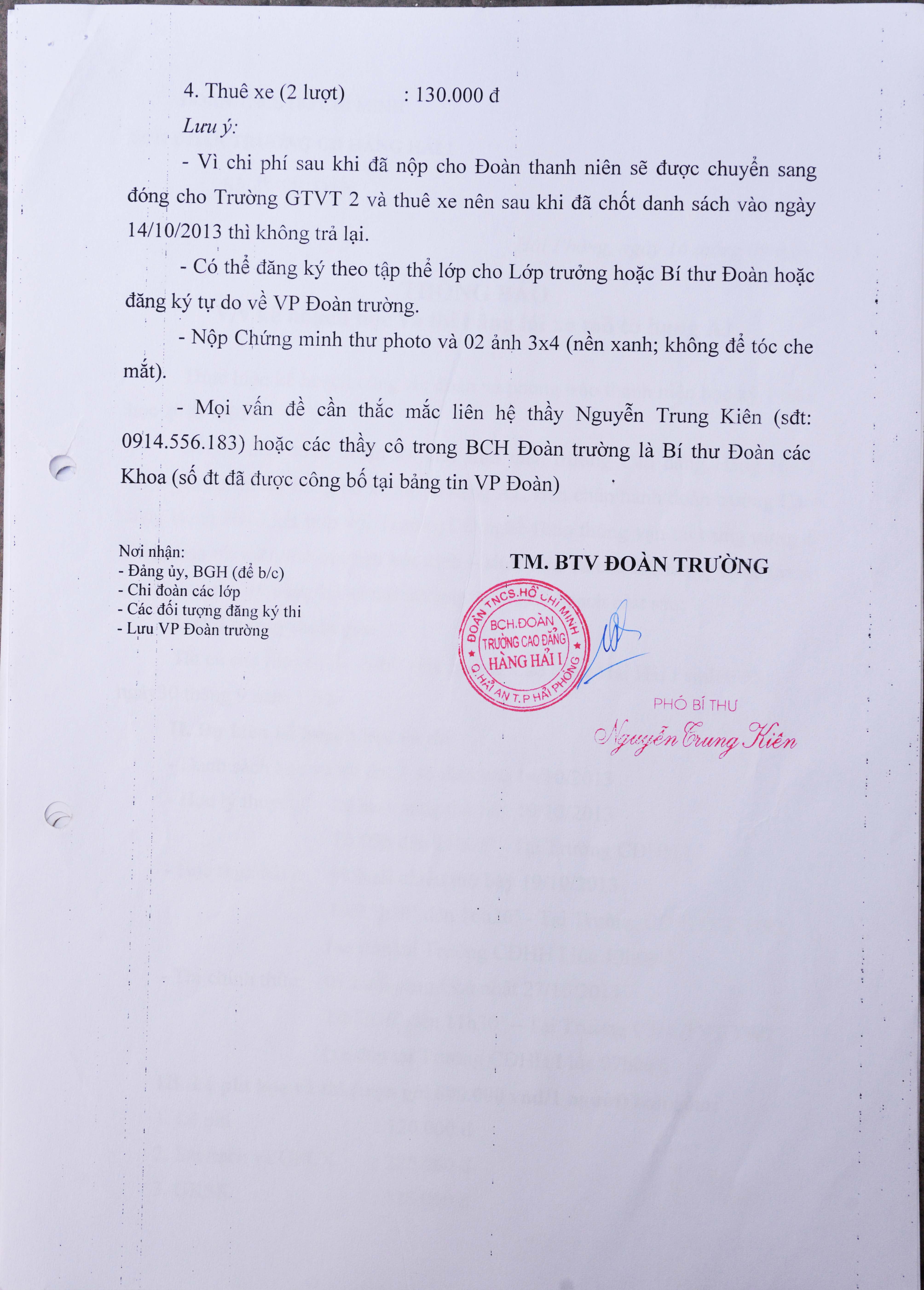 Thông báo về lịch làm việc của BCH Đoàn trường học kỳ 1 năm học 2013-2014