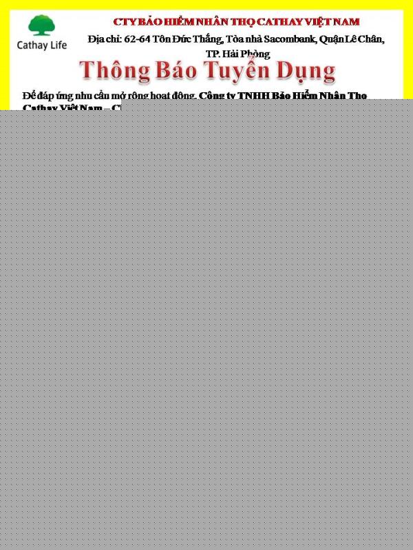Thông báo tuyển dụng Công ty TNHH Bảo hiểm nhân thọ Cathay Việt Nam – Chi nhánh Hải Phòng