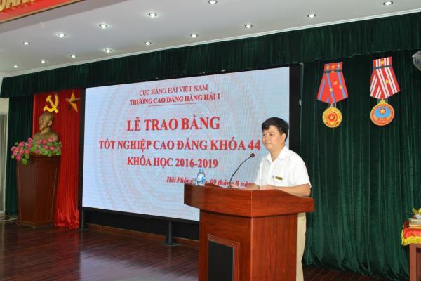 Thầy cũng đã gửi tới các em sinh viên đôi lời tâm tình của một người đi trước trước khi các em chia tay nhà trường, bước vào cuộc sống mới, đó là: “ Vận dụng những kiến thức, kỹ năng nghề nghiệp đã tích lũy được vào hành nghề; Luôn tiếp tục học hỏi và rèn luyện không ngừng”, “Luôn xây dựng niềm tin để vượt qua mọi khó khăn, thử thách và chính mình trong cuộc sống” và “Luôn sống, làm việc có trách nhiệm với cộng đồng với bản than và xứng đáng là sinh viên của Trường Cao đẳng Hàng hải I”. Thay mặt các thầy giáo, cô giáo cùng toàn thể cán bộ, nhân viên Nhà trường, Thầy Phó hiệu trưởng chúc các em sinh viên mạnh khỏe, tự tin, bản lĩnh bước vào đời để lập nghiệp. Chúc các em có được việc làm đúng ngành, nghề đào tạo và khẳng định được mình trong công việc và cuộc sống.
