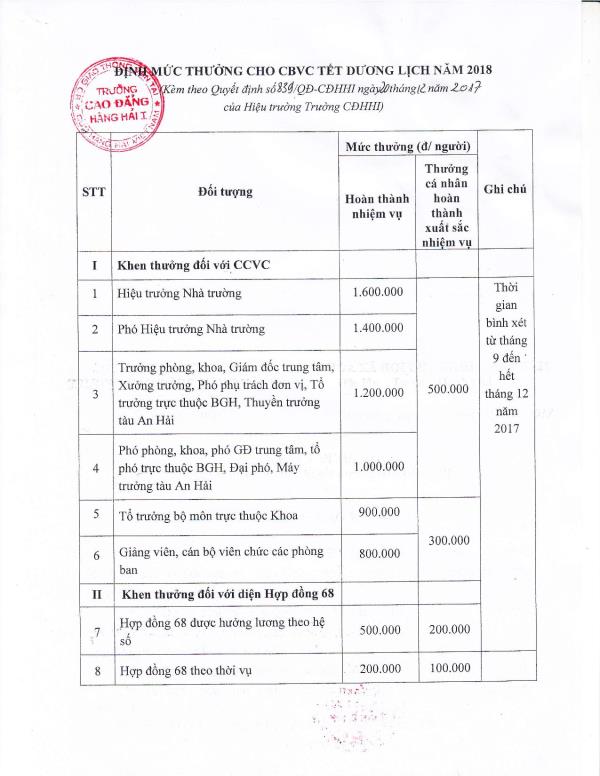 V/v khen thưởng nhân dịp tết dương lịch 2018