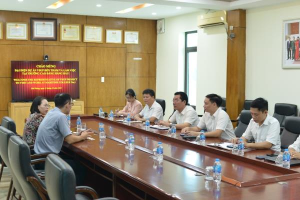 Ảnh 1. Toàn cảnh buổi đón tiếp đoàn đại diện Dự án Nâng cao chất lượng thuyền viên Việt Nam VSUP đến thăm trường