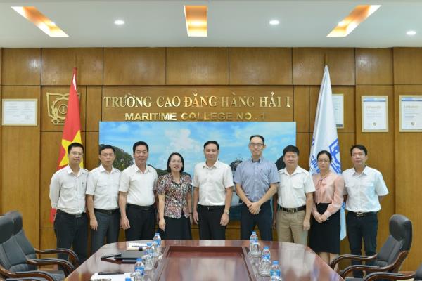 Đón tiếp đoàn có TS. Lưu Việt Hùng - Hiệu trưởng Nhà trường, thầy Lương Quang Trung – Phó hiệu trưởng cùng đại diện Phòng HTQT&KHCN, đại diện các Khoa Điều khiển tàu biển, Khai thác máy tàu biển và đại diện Trung tâm PTNLHH & XKLĐ.
