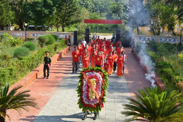 Ảnh 3. Đoàn cán bộ, giáo viên nhà trường thắp hương tri ân các anh hùng, liệt sĩ tại Nghĩa trang Liệt sĩ trên Huyện đảo