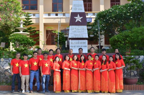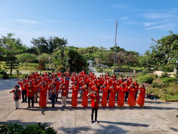 Ảnh 2. Đoàn cán bộ, giáo viên nhà trường tham gia nghi Lễ chào cờ tổ quốc tại Liên đội TNXP Bạch Long Vĩ