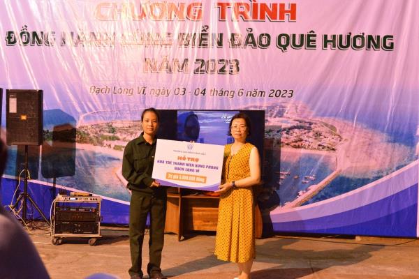 Nhân chuyến công tác, đoàn đã đến thăm, hỗ trợ UBND Huyện xây dựng cột cờ, hỗ trợ Liên đội thanh niên xung phong Bạch Long Vĩ, hỗ trợ Nhà trẻ thanh niên xung phong Bạch Long Vĩ và tặng quà các gia đình hộ nghèo trên đảo với tổng số tiền 22 triệu đồng do cán bộ, giáo viên trong đoàn công tác quyên góp, ủng hộ.