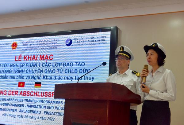 Đại diện phía Viện tiểu thủ công nghiệp và kỹ năng nghề Leipzig, chuyên gia Wolfgang Friedrich gửi lời cảm ơn nhà trường đã nhiệt tình phối hợp, nỗ lực vượt khó để thực hiện tốt các hướng dẫn, yêu cầu của chuyên gia về công tác tổ chức đào tạo 2 nghề Điều khiển tàu biển và Khai thác máy tàu thuỷ theo tiêu chuẩn Đức; đánh giá nhà trường đã hoàn thành tốt công tác chuẩn bị cho kỳ thi tốt nghiệp phần 1. Chuyên gia Wolfgang Friedrich thay mặt Viện tiểu thủ công nghiệp và kỹ năng nghề Leipzig trao đề thi cho các Chủ tịch Hội đồng thi 02 nghề Đức. Ông cũng chúc các sinh viên bình tĩnh, tự tin, đạt kết quả cao trong kỳ thi này.