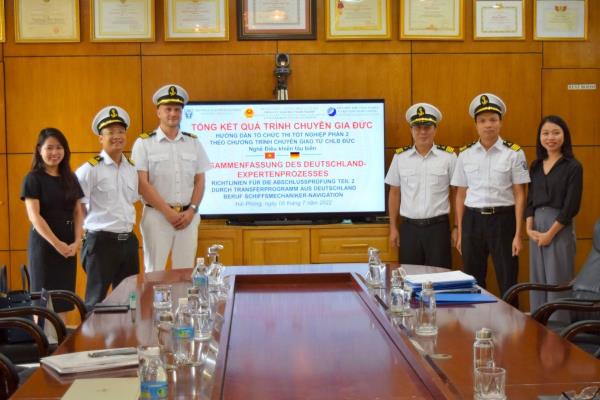 Thực hiện Công văn số 1154/TCGDNN-ĐTCQ ngày 13/6/2022 của Tổng cục Giáo dục nghề nghiệp về kế hoạch chuyên gia Đức hướng dẫn các trường đào tạo thí điểm 22 nghề chuyển giao từ Đức, ngày 08/7/2022 Trường Cao đẳng Hàng hải I tổng kết quá trình chuyên gia Đức hướng dẫn công tác tổ chức đào tạo và chuẩn bị cho Kỳ thi tốt nghiệp phần 2 cho nghề trọng điểm quốc tế, chuyển giao từ CHLB Đức là nghề Điều khiển tàu biển.