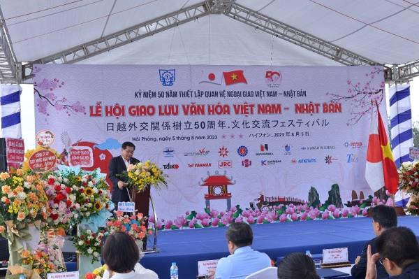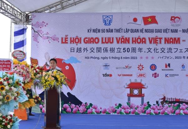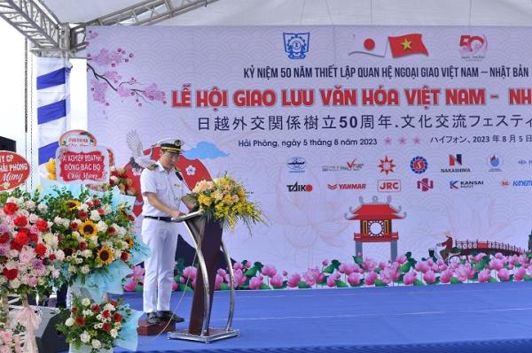 Đại diện lãnh đạo Cục Hàng hải Việt Nam tham dự buổi lễ, Ông Hoàng Hồng Giang, Phó Cục trưởng Cục Hàng hải Việt Nam đánh giá cao việc hợp tác của Nhà trường với các cơ quan, đại diện doanh nghiệp của Nhật Bản tại Việt Nam trong việc đào tạo, huấn luyện thuyền viên và đã cung cấp số lượng thuyền viên rất lớn cho các Công ty vận tải biển Nhật Bản. Phó Cục trưởng đánh giá cao công tác tổ chức Lễ hội giao lưu kỷ niệm 50 năm hữu nghị Việt Nam – Nhật Bản của nhà trường và đề nghị thông qua lễ hội ngày hôm nay, Nhà trường và các doanh nghiệp Nhật Bản và Việt Nam tiếp tục tìm hiểu, kết nối hợp tác trong các lĩnh vực đào tạo, huấn luyện, việc làm nói chung và lĩnh vực Hàng hải nói riêng.